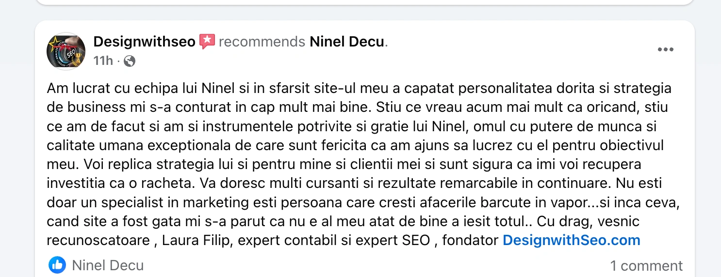 De asemenea, am ajutat în ultimii 12 ani, sute de mici afaceri să pornească și să aibă rezultate în mediul online. Am rezolvat nenumărate provocări și am înțeles care sunt luptele prin care un antreprenor aflat la început trece în România…